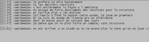 Enfin, pour conclure la discussion, j'ai fait un constat. Cela pourrait s'apparenter à un reproche, mais ce n'est pas exactement le cas. J'ai observé depuis plusieurs semaines un désintéressement de la part du roster par rapport au site web de l'équipe et donc par rapport aux autres sections qui constituent notre groupe. Une structure multigaming, c'est comme une famille, les relations ne sont pas toujours cordiales il est vrai, mais le but est avant tout de passer du bon temps, de prendre un minimum de plaisir et de bâtir un réseau de connaissances. J'en ai un peu marre de jouer le "rôle du flic", cela devient franchement ridicule et surtout usant à la longue...