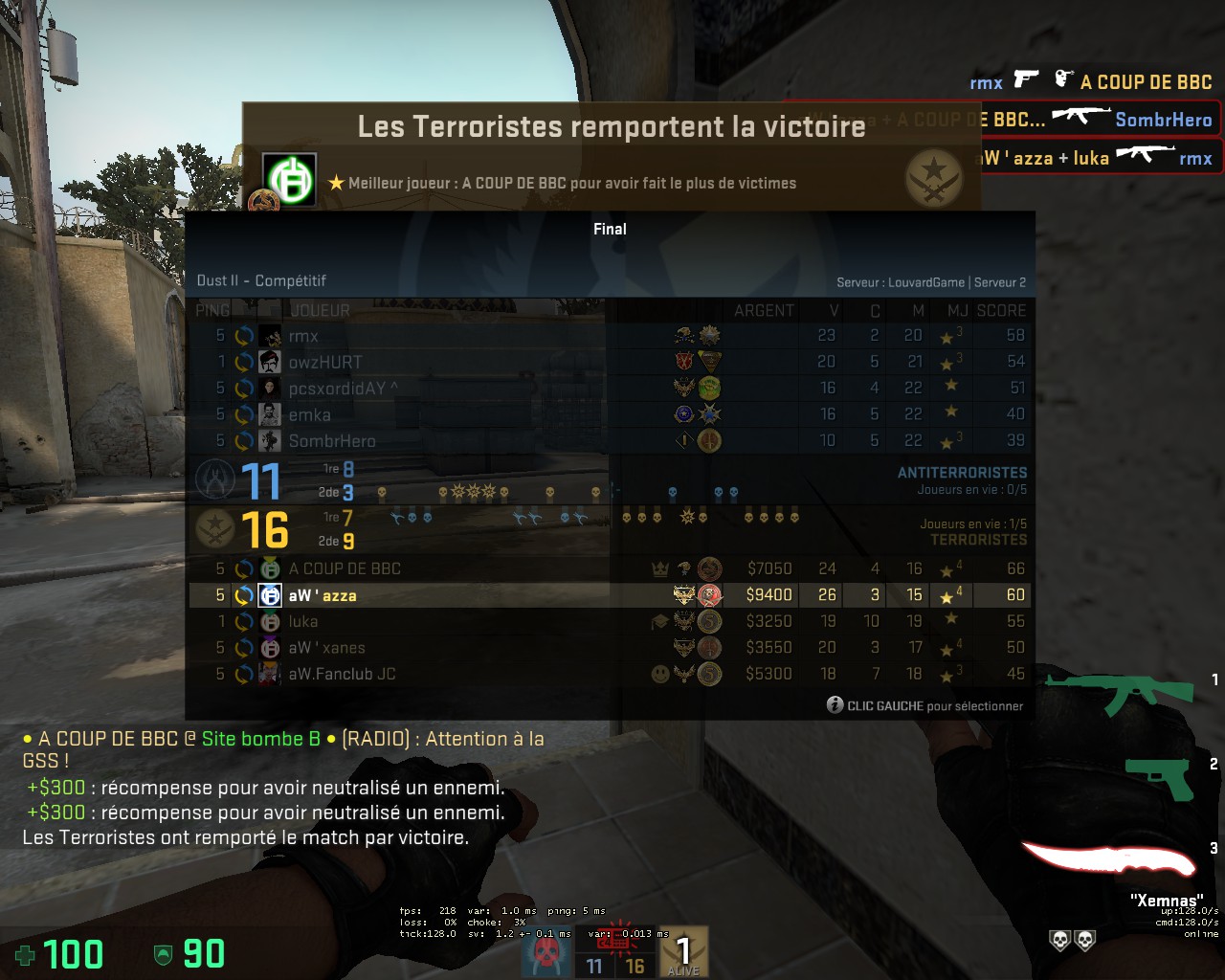Match  - Counter Strike GO - vs. CheetahInformations | Opponent : | Cheetah | Website : | Visit | Type : | LouvardLAN Playoffs | Date : | 21/02/2016 On 12:30 | Our Line Up : | steNz - azza - luka - arny - xanes | Their Line Up : | rmx - pcs - Emka - owzr - Sombrehero | Score : | 16 : 11 | Comments | http://challonge.com/fr/LouvardCSGO | Membres disponible pour cette war : | | | Return On Wars lists
