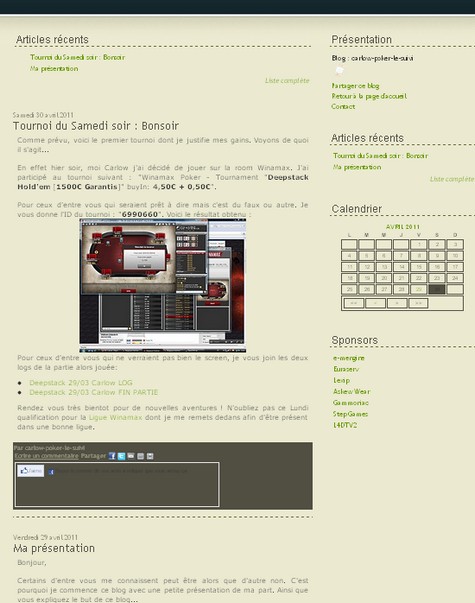 Baptiste "Carlow" Delarue, a décidé de créer un blog qui lui est associé (informations, résultats, actualité poker...). Ce dernier est intitulé "Carlow-poker-le-suivi".