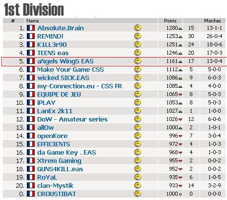 Mise à jour du classement de la ligue :