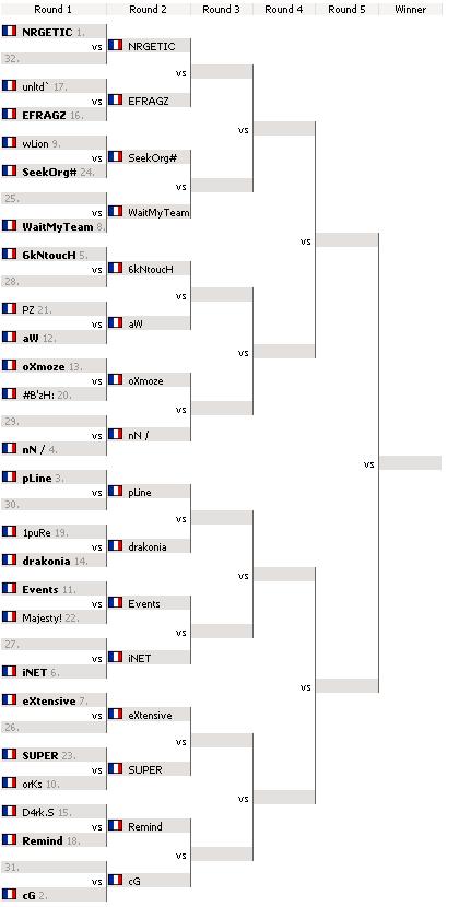 - format du tournoi : arbre à simple élimination (pas de double bracket)