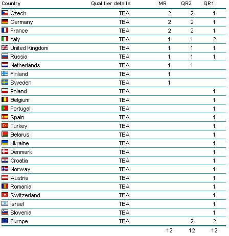 Voici ci-dessous un tableau résumant le nombre de qualifiés pour chaque nation :