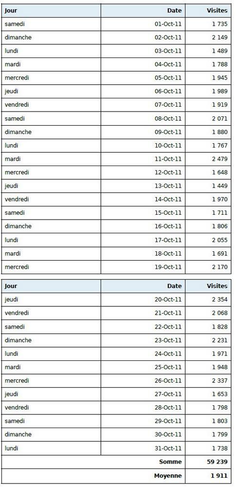 Les chiffres pour le mois d'Octobre 2011 sont désormais disponibles.