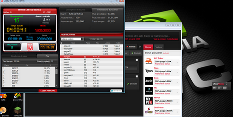 Ainsi, il a participé au MyPok Limited Series, et a terminé 5ème du tournoi (sur 65 joueurs environ). Il a remporté 140 euros.
