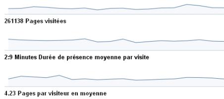 Près de 261140 pages vues au total ce mois-ci, ce qui représente une hausse exponentielle de 16,8% par rapport aux chiffres du mois précédent. Une performance qui est en parfaite adéquation avec la hausse du nombre de visiteurs uniques, que l'on a observée précédemment.