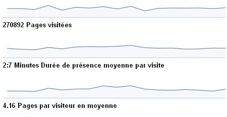 Une autre statistique indique le nombre moyen de pages ouvertes par visite unique. Celui-ci passe de 4,23 à 4,16. Notons que seules les pages entièrement chargées sur le site sont comptabilisées. Ceci reste ainsi relativement stable.