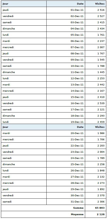 Voici ci-dessous le graphique associé au mois de Décembre 2011 :