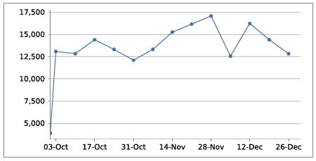Nous atteignons pratiquement la barre symbolique des 66000 visiteurs uniques, ce qui permet de confirmer la tendance observée depuis le début de la période estivale, à savoir une hausse significative voire exponentielle du nombre de visiteurs. Nous finissons l'année en beauté.