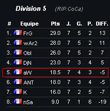 Concernant le classement final de la division 5, le voici ci-dessous :