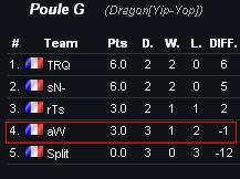 Voici ci-dessous le classement mis à jour de notre poule (poule G) :