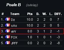 Voici ci-dessous le classement mis à jour de notre poule (poule B) :