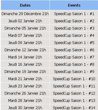 Voici ci-dessous la répartition des points attribués lors de chaque SpeedCup :