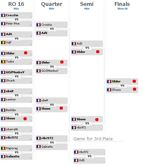 type de tournoi/format des matchs : tournoi à élimination directe - 1vs1