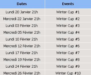 Voici ci-dessous la répartition des points attribués lors de chaque Winter Cup :