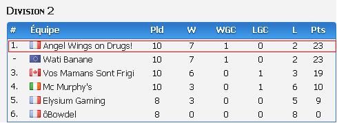 Voici ci-dessous le classement mis à jour de la division 2 :