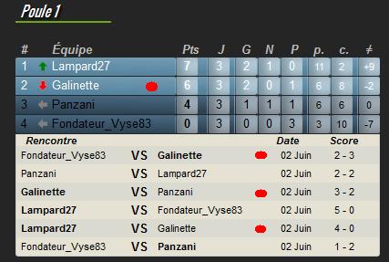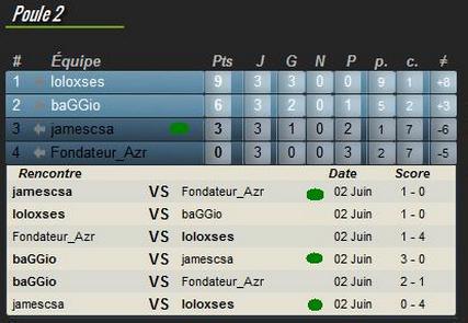 | Poule 2 (classement et scores des rencontres) |