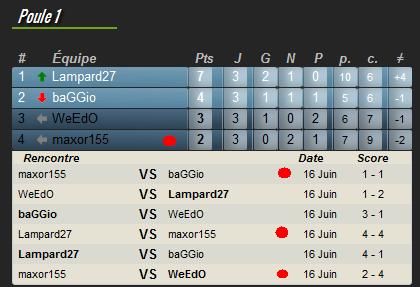 Poule 1 (classement et scores des rencontres)