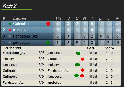 | Poule 2 (classement et scores des rencontres) |