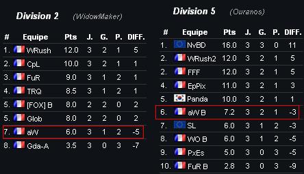 Voici ci-dessous les classements mis à jour des divisions 2 et 5 :