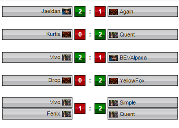 Tandis que Jaeldanet VIVO remportaient leurs solos respectifs, Kurtis et Drop s'inclinaient assez logiquement face à Quent et YellowFox.