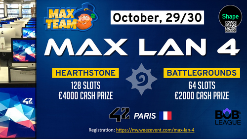 La MAX LAN n’est jamais partie : cela fait 4 ans que nous organisons l’évènement pour vous, alors ne ratez pas cet opus, qui va être le meilleur moment HearthStone en Europe de 2022 !