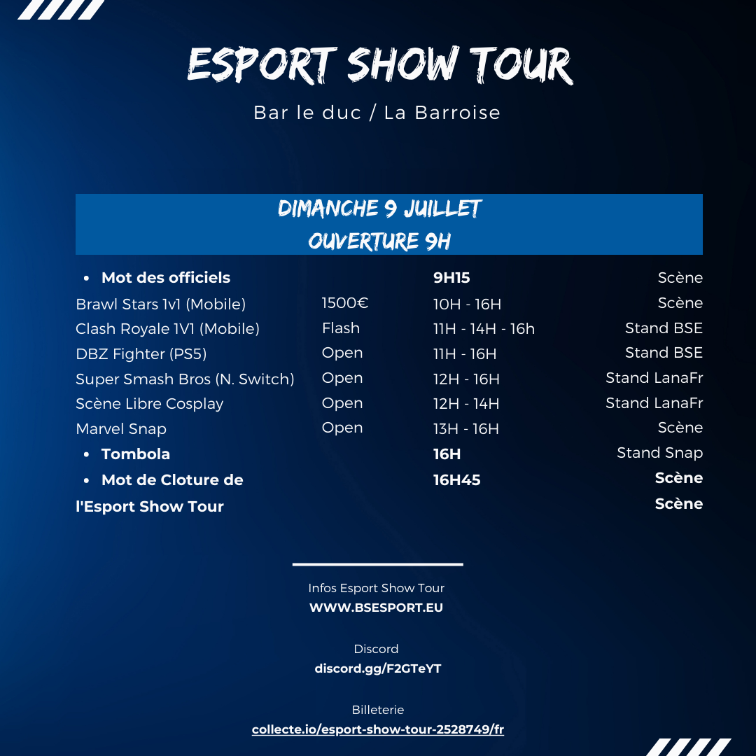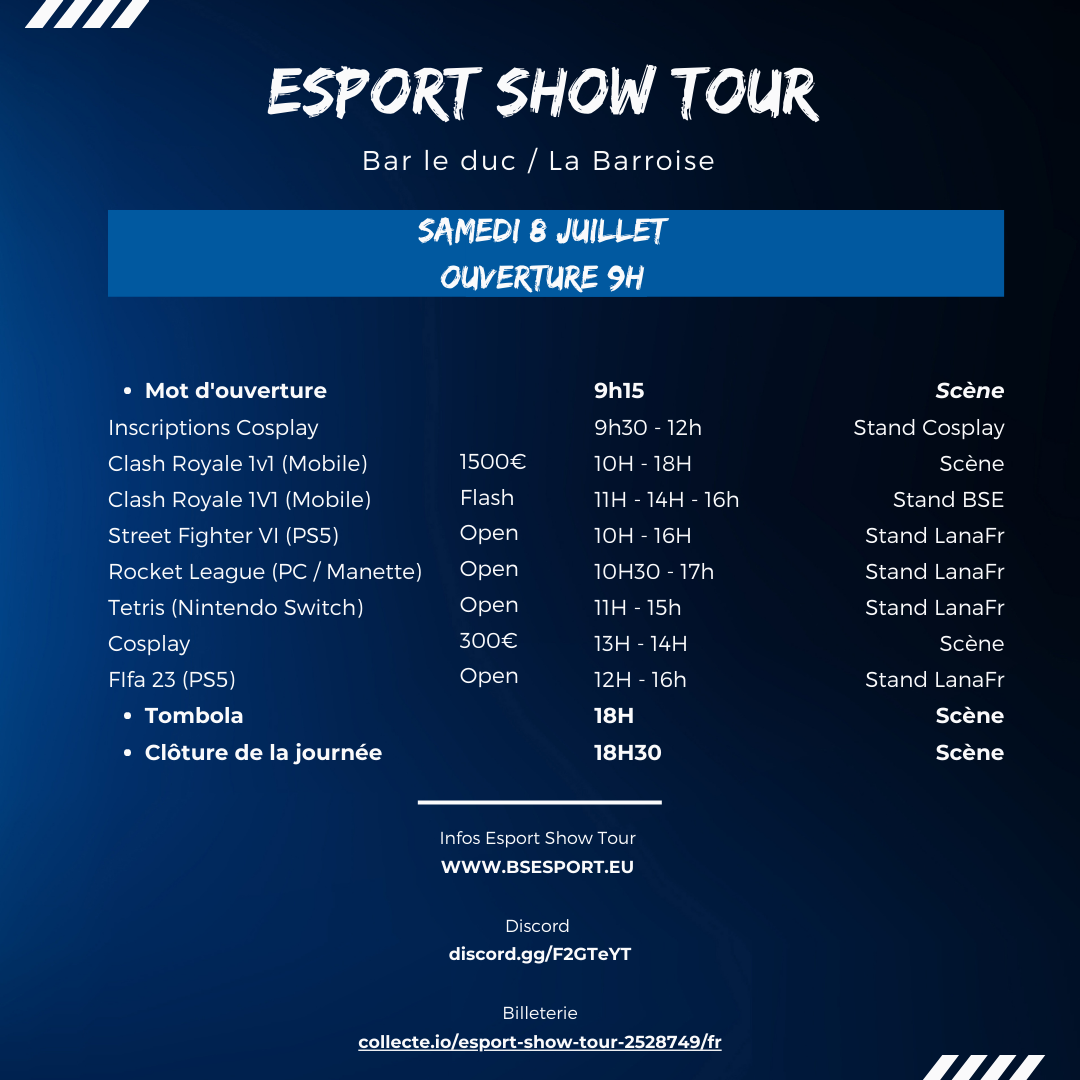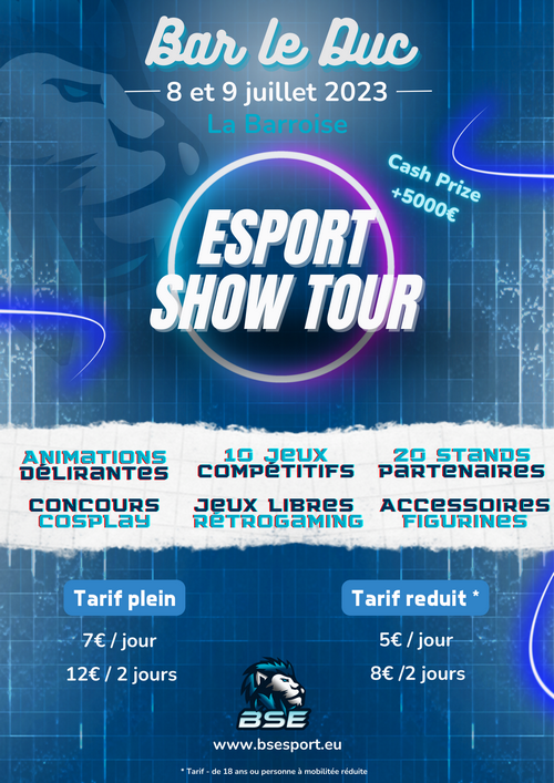 Louis : L’Esport Show Tour se déroulera à Bar-le-Duc (Meuse) le weekend du 8 et 9 Juillet 2023.