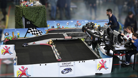 circuit expérimental FPV : possibilité de piloter des voitures radiocommandées sur un circuit Mario Kart à travers un écran