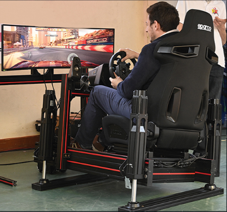 simulateur dynamique de conduite positionné sur 4 vérins électriques