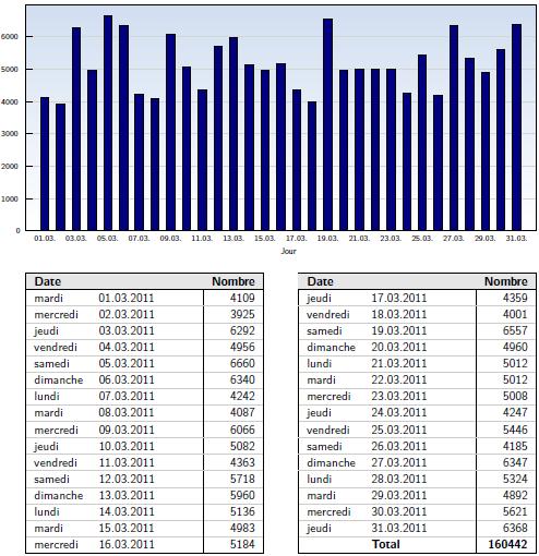 Voici les statistiques journalières observées durant le mois de Mars 2011 :